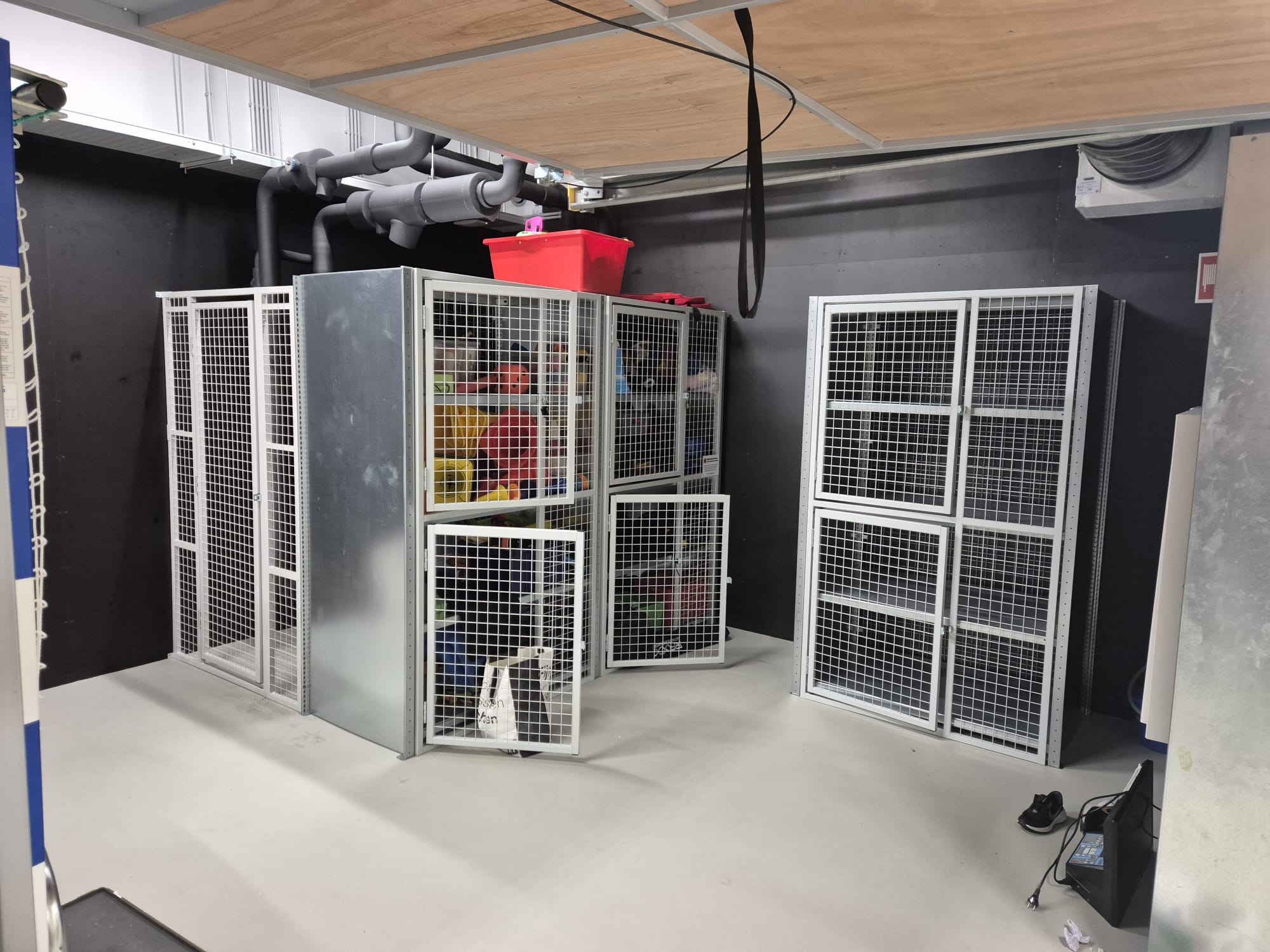 Wij hebben onze BallTrolley zo ontworpen dat er geen ballen meer uit ”GESTOLEN” kunnen worden. De oplossing die wij hebben gebruikt is heel simpel, namelijk gaaspanelen. De kar is rondom voorzien van gaas en de bovenzijde is afgesloten met een gaasklep die afgesloten kan worden met een hangslot. De ballenwagen is in combinatie met onze lockers te gebruiken waardoor de materiaalruimte optimaal wordt benut!